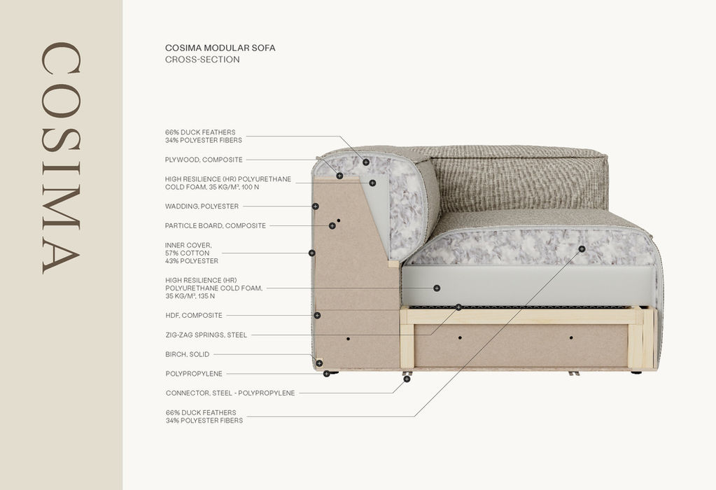 אורך משתנה בהתאם למודולים הנבחרים | עומק 103 ס״מ | גובה 66 ס״מ | עומק מושב 72 ס״מ | גובה מושב 40 ס״מ | רוחב מסעדי יד 30 ס״מ