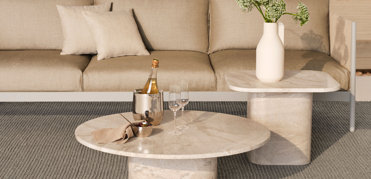 שולחנות הקפה מאבן Eida בגרסא חדשה לחוץ! השולחנות משלבים בחוכמה צורניות פשוטה ופיסולית. בזכות האבן הטבעית, כל שולחן יראה קצת שונה מאחר מה שיבטיח לכם את השולחן הייחודי לכם.