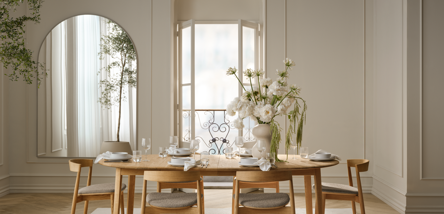 עיצוב קלאסי פוגש עבודת אומן מעולה. סדרת שולחנות האוכל Palo העשויים עץ אלון מלא, ומציגה פרטים מעודנים שמייחדים אותה.