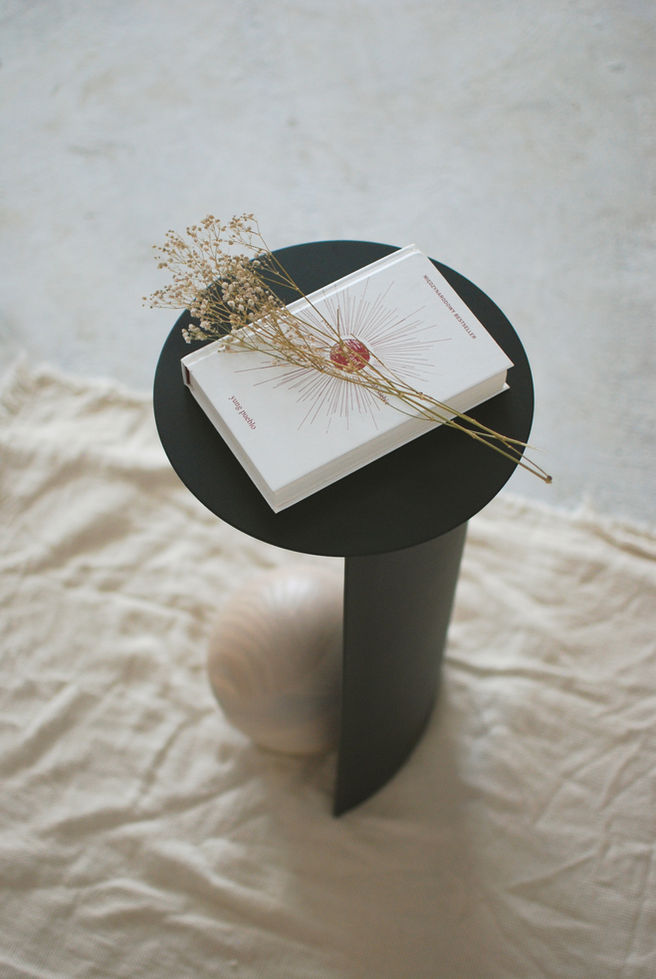 Sion הוא שולחן צד ממתכת בגימור צבע איכותי ובסיס עץ אשה מלא בעבודת יד.